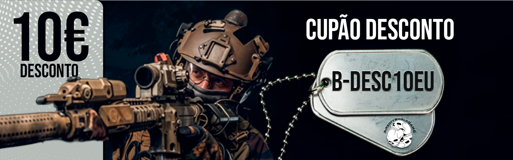 Agora, se quiser, ajudamos a comprar a sua M4 ou M16 com um código de desconto de 10 euros. Basta adicionar o código B-DESC10EU ao seu carrinho ao finalizar a compra em airsoftworldgame.com.