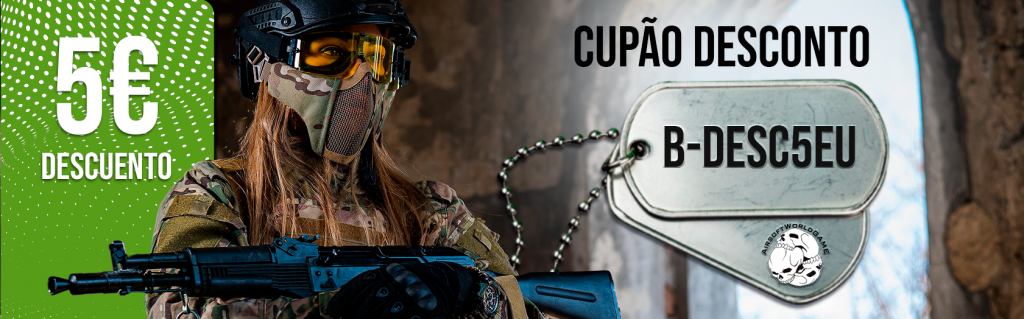 Se procura a sua primeira arma de airsoft, na airsoftworldgame.com queremos ajudá-lo com um código de desconto de 5 euros para a sua primeira compra. Basta adicionar o código B-DESC5EU ao seu carrinho ao finalizar a compra.