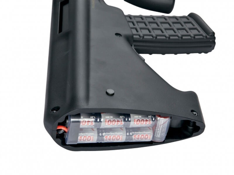 La versión A2 de Steyr AUG es la versión actualizada de la serie AUG (Armee Universal Gewehr) con licencia de Steyr Mannlicher, Austria. La A2 tiene un rail donde puedes montar tu dispositivo de puntería preferido. Al igual que en la versión A1, la empuñadura delantera es plegable y las partes internas son de metal.