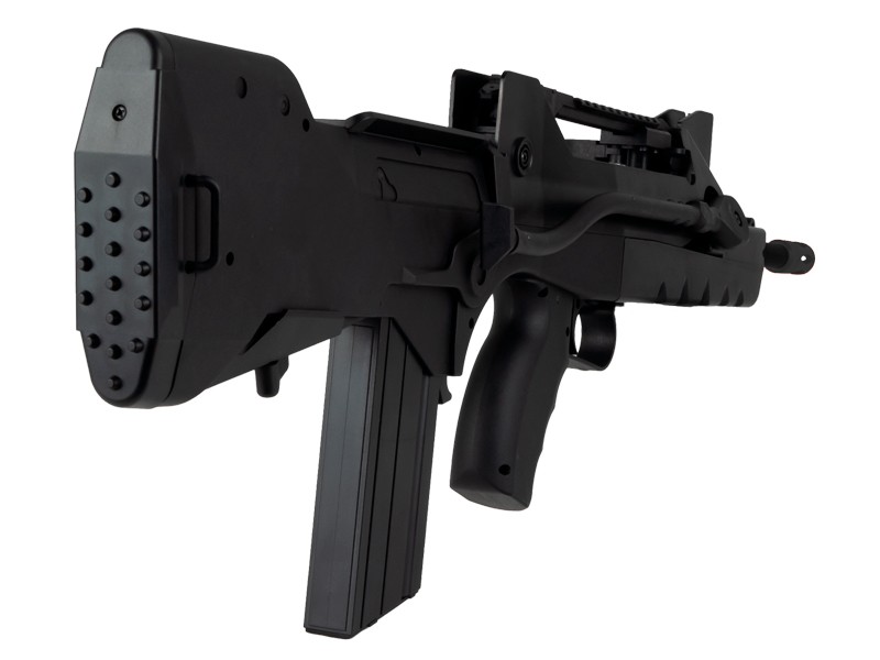 La réplica cuenta con un sistema BAX fijo y rearme manual con cada disparo, lo que garantiza un funcionamiento simplificado y comprensible para jugadores de todos los niveles. Su construcción íntegramente en fibra de nailon le permite pesar sólo 1,03 kg y, al mismo tiempo, ser duradero.