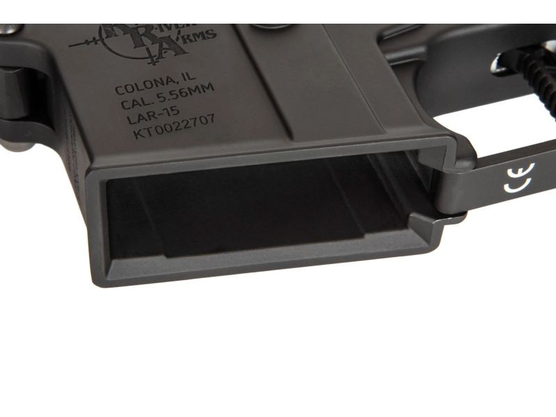 La réplica presenta marcas completas y autorizadas del fabricante de armas de fuego: Rock River Arms . Es un fabricante de piezas y accesorios para armas de fuego, pero sobre todo, un fabricante de carabinas AR-15 de alta calidad. La empresa fue fundada en 1996 por los hermanos Larson en cooperación con Les Baer y tiene su sede en Colona, Illinois. Hoy, RRA suministra bajo contrato carabinas AR-15 a la agencia antinarcóticos DEA, el FBI o los alguaciles estadounidenses.