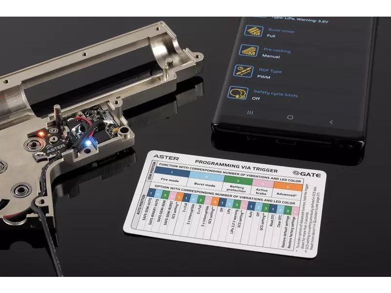 Gracias a ASTER, puedes mejorar tu réplica reemplazando los conectores por un controlador avanzado equipado con innovadores sensores ópticos , que ofrece hasta 240 configuraciones de sensibilidad del gatillo. La reacción rápida del gatillo y muchas otras funciones útiles te permitirán obtener una ventaja sobre tus oponentes en el campo de batalla del airsoft. Un fusible inteligente protege la batería, el motor y el controlador, incluso de una conexión inversa de la batería. Esta función, junto con los sensores ópticos, hace de ASTER? el sistema de tipo drop-in más duradero disponible en el mercado.