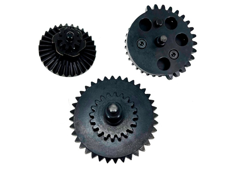 - Material: aço 40Cr (engrenagem do setor, engrenagem reta e engrenagem do eixo central da engrenagem cónica), MIM (engrenagem cónica), aço inoxidável 420F (pino)