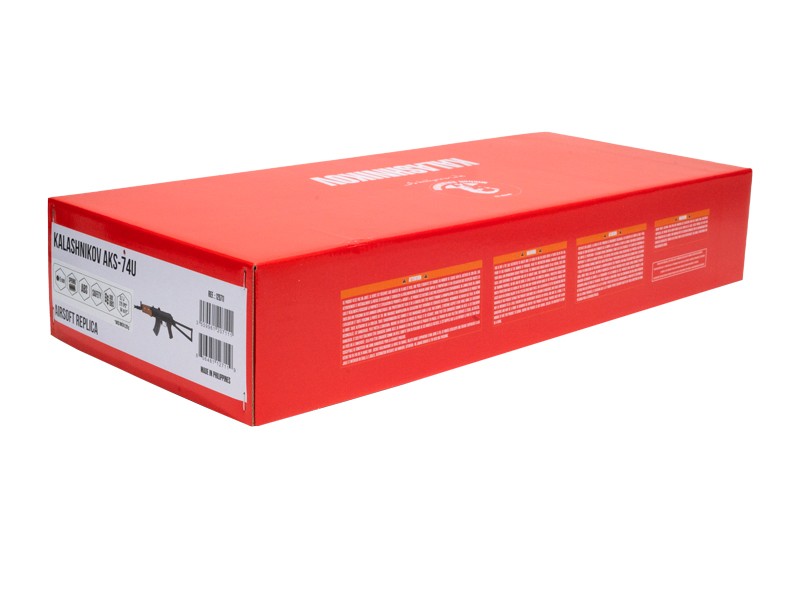 A réplica do Kalashnikov AKS-74U está disponível sob licença oficial do Kalashnikov em uma versão Spring com aparência realista. Sua construção em ABS apresenta segurança funcional, semelhante à arma que o inspira. Desenvolve uma potência de 0,7 joules e graças ao seu carregador de 300 bolas, você nunca ficará sem munição.