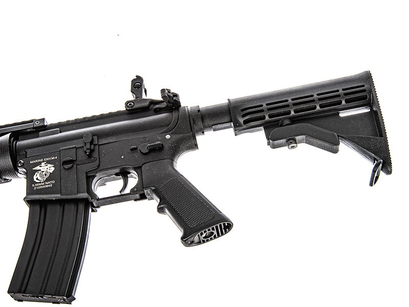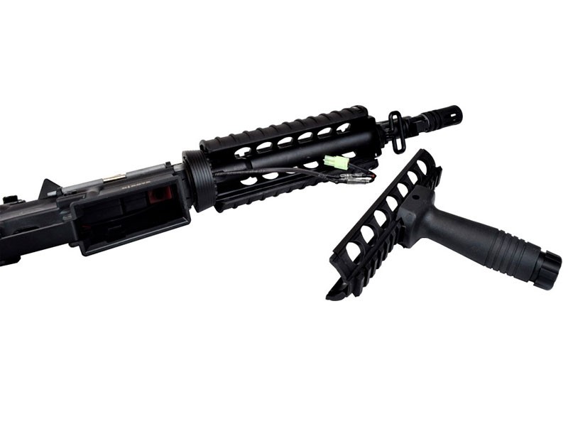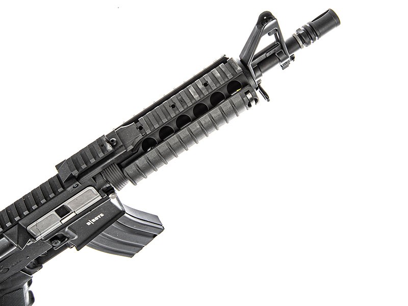 O D-BOYS M4 RIS (5781) é uma espingarda de airsoft elétrica que combina portabilidade, robustez e adaptabilidade tática. Com o seu corpo leve em polímero e comprimento ajustável entre 675 e 760 mm, oferece um equilíbrio ideal para vários cenários de jogo. O seu carregador de alta capacidade (~300 BBs) e os modos de disparo completos garantem que está pronto para entrar em combate sem interrupções. A gearbox em metal e o sistema hop-up ajustável proporcionam uma base sólida para o desempenho e upgrades, enquanto o handguard RIS permite a instalação de miras, lanternas ou outros acessórios para se adequar ao seu estilo.