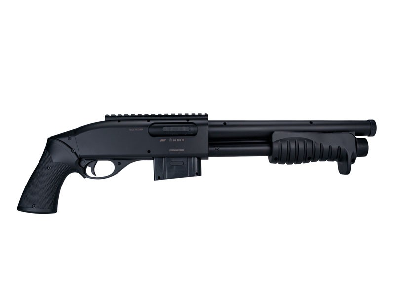 A Espingarda Tática ASG é uma espingarda de ação de bombeamento compacta, ideal para quem procura uma arma de mão. A sua unidade de hop-up ajustável externamente facilita o ajuste fino da precisão. Além disso, o seu carril superior de 20 mm permite a fixação de todos os tipos de acessórios, como miras telescópicas, montagens D ou lanternas, permitindo uma ampla personalização. O carregador de 17 cartuchos simplifica o processo e é fácil de recarregar para a próxima escaramuça. Não necessita de bateria ou gás; basta bombear para comprimir a mola e está pronto para disparar. Simples e divertido! O cabo texturizado e o slide canelado acrescentam autenticidade e facilidade de utilização a esta divertida adição a qualquer coleção.